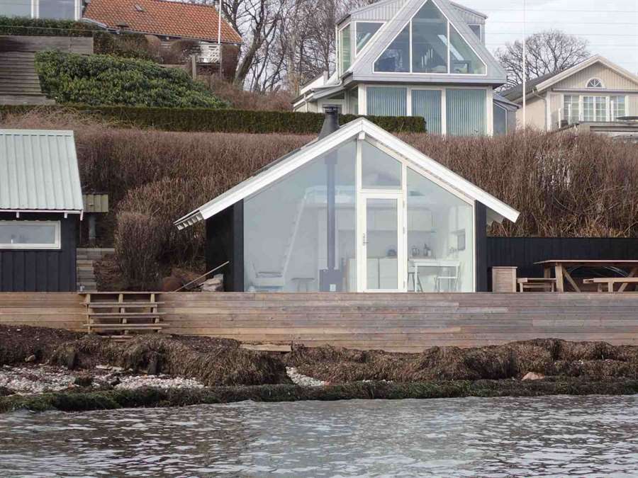 - Langs kysten ligger der flere små badehuse som høre til de store ejendomme.