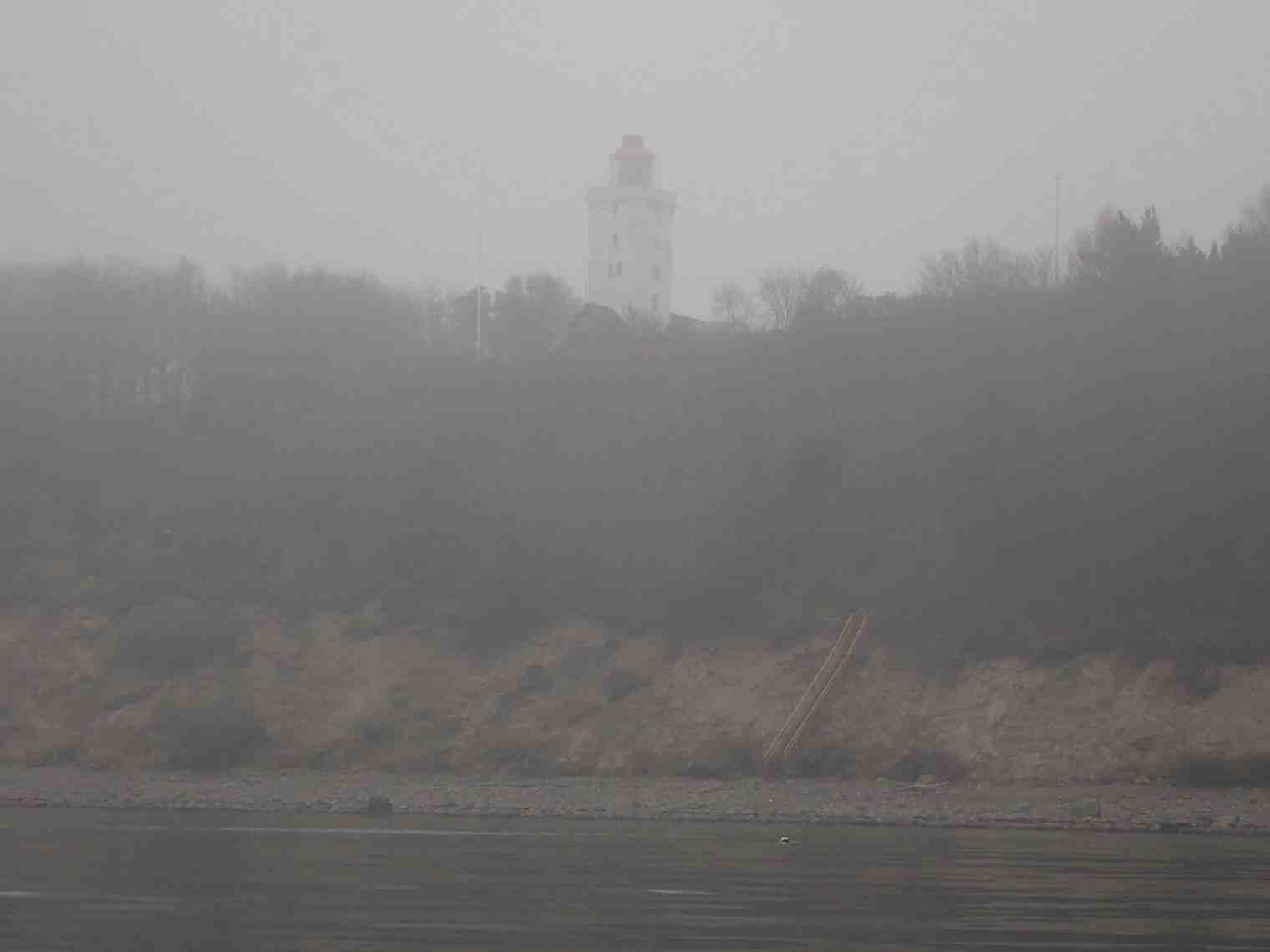 - The lighthouse disappears in the mist just before I arrive at the beach from where I startede.