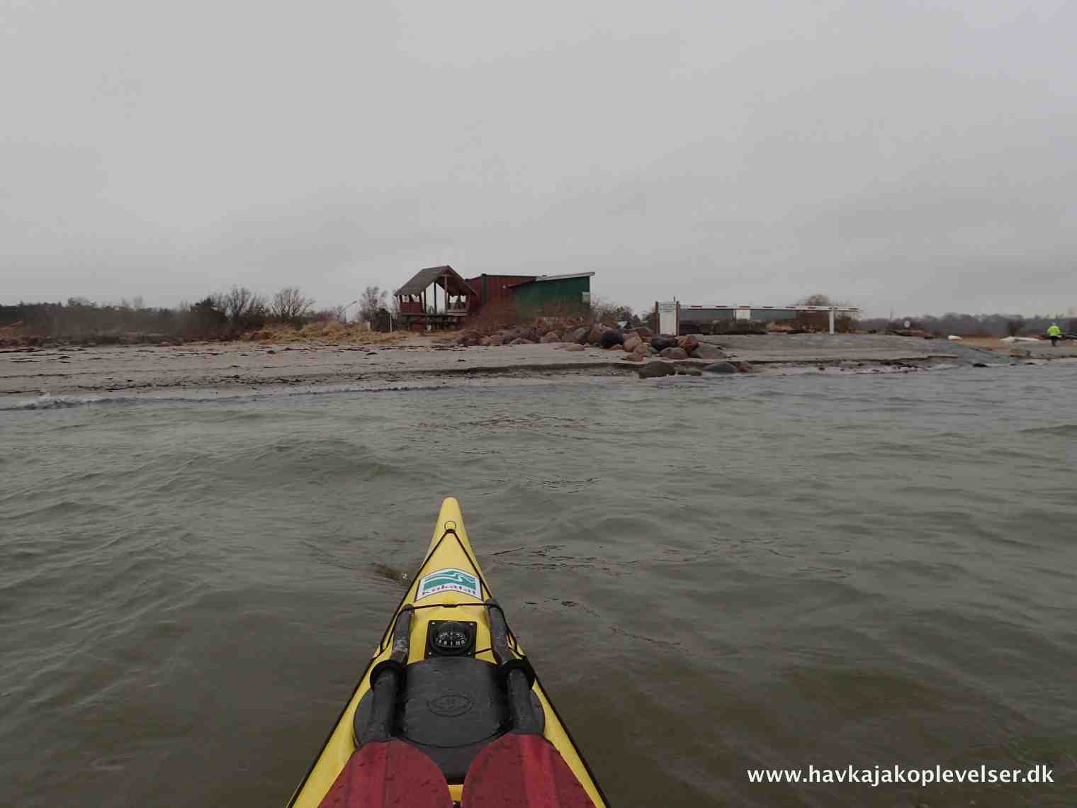 - We rounds point at Spodsbjerg and begin paddling toward NE.