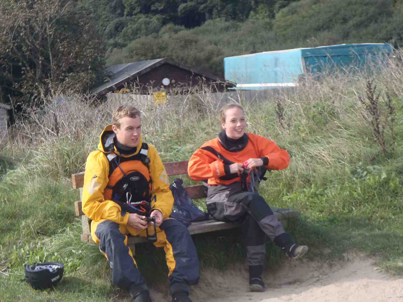 I sol og læ for vinden skiftede vi til noget tørt tøj og så mad, kaffe og lystig snak om grotter, sæler osv.
