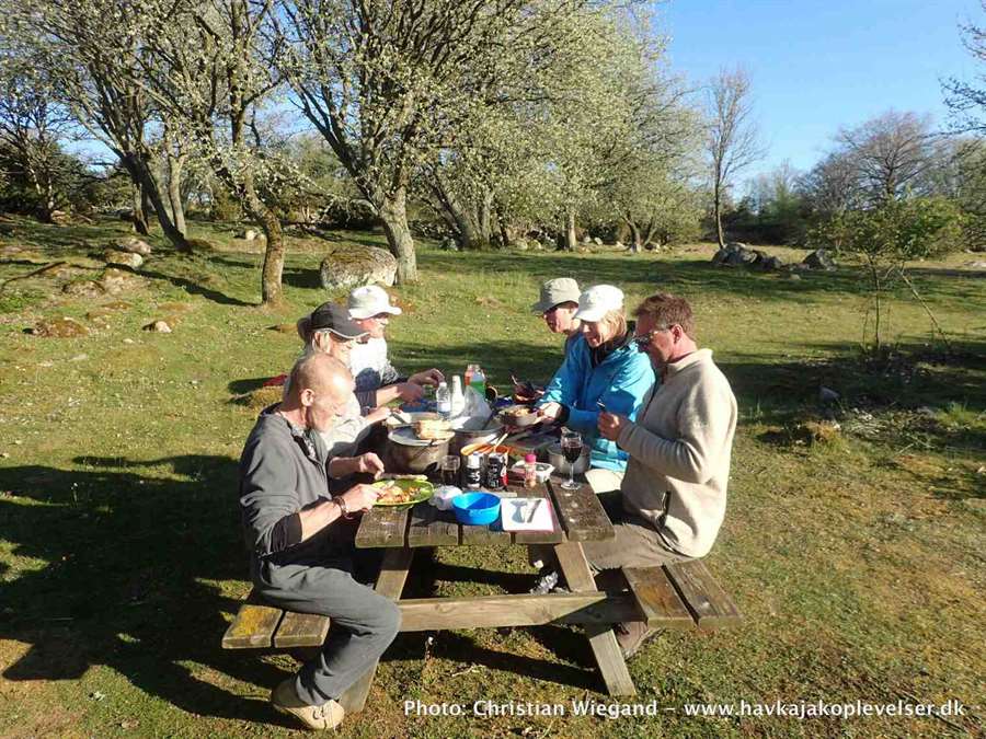 - Efter morgenmad, pakkes kajakkerne, og deltagerne får hver deres navigations opgaver.